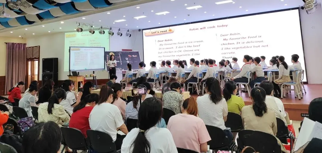 杨艳萍老师执教的是一节五年级的读写课《What would you like?》。本课紧扣新课标,从发展学生核心素养出发,遵循学生思维发展规律,语言学习渗透在语篇主题意义探究中,理解性技能与表达性技能协同发展。在鼓励学生充分表达的过程中,深挖语篇育人价值,树立学生健康饮食,追求绿色生活的观念,并最终形成正确的价值判断。本课先进的教学理念和独特的教学设计,令在场专家和听课老师眼前一亮,连连赞叹,好评不断。