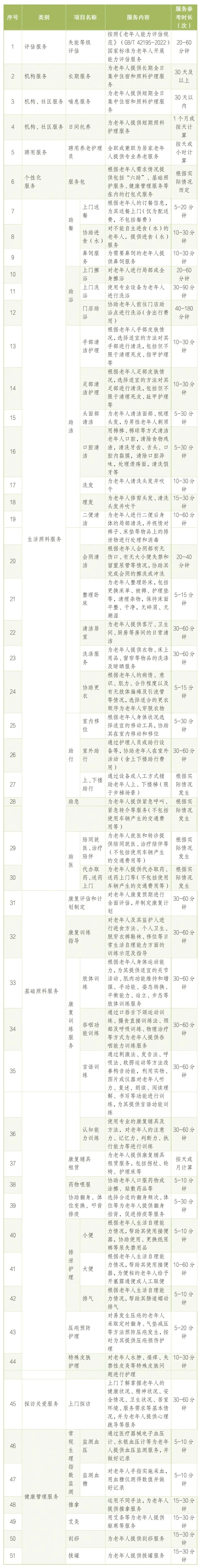 江西省养老服务消费补贴项目清单