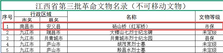 安义县砀山桥(红军桥)成功入选江西省第三批不可移动革命文物名录