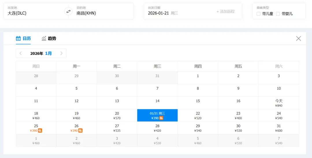 ✈返程最低价:390