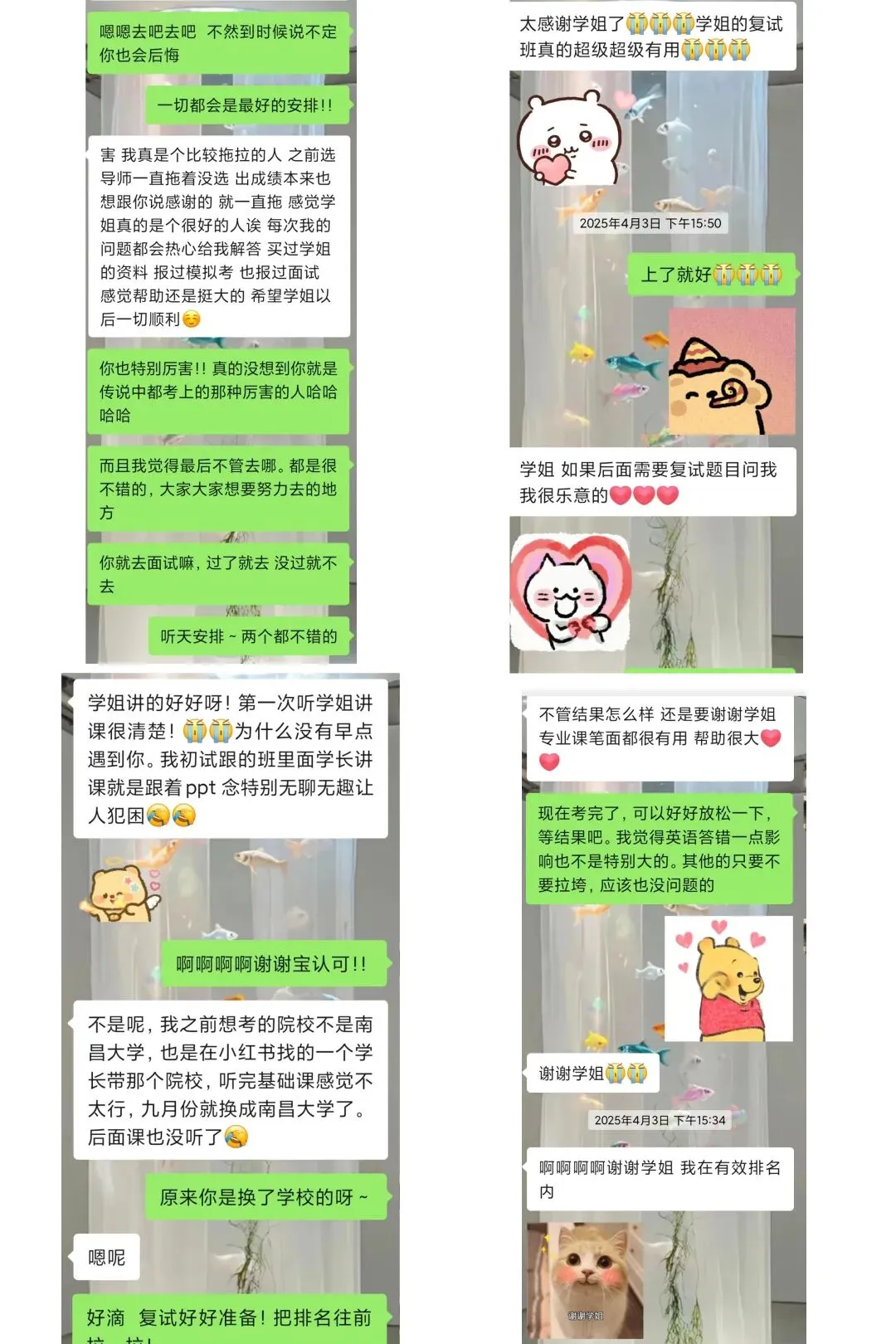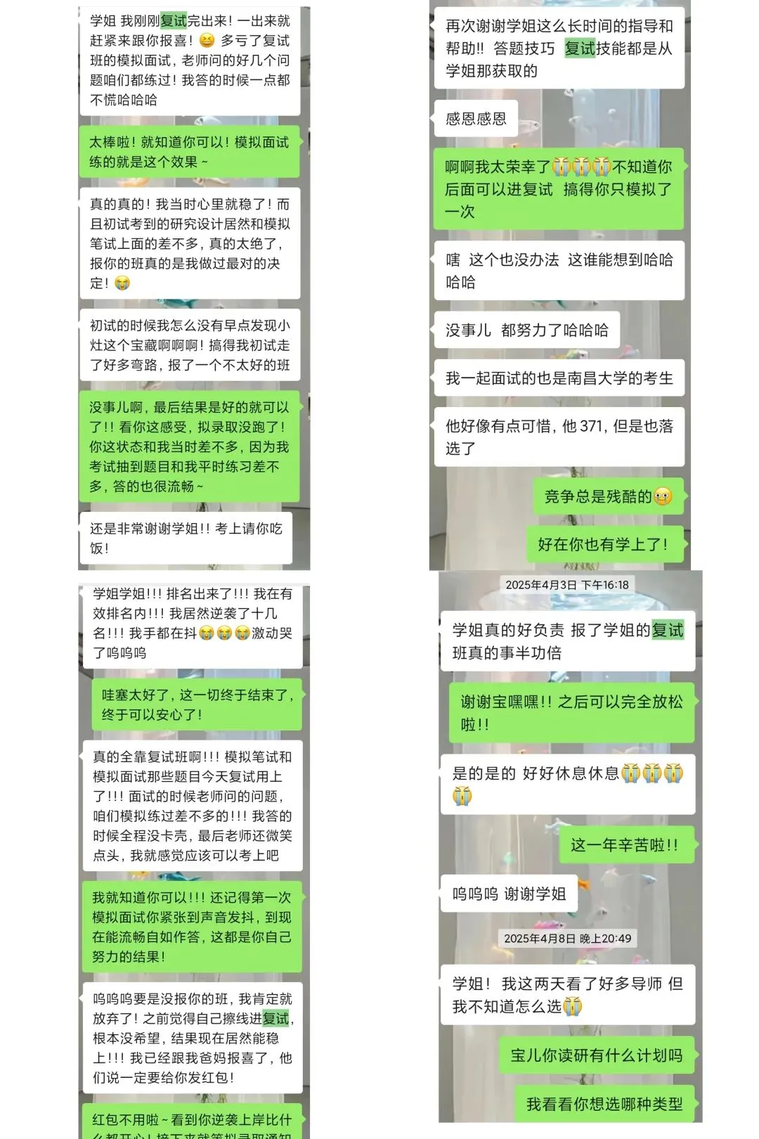 不管是最终成功上岸的同学,还是中途选择转向其他方向的伙伴,都给了我最真挚的肯定和支持。真的非常非常感谢大家!这些反馈不只是对我工作的认可,更是我一路前行的底气和动力,也让我更坚定地想要把更优质的帮助和服务,带给每一位信任我的同学。