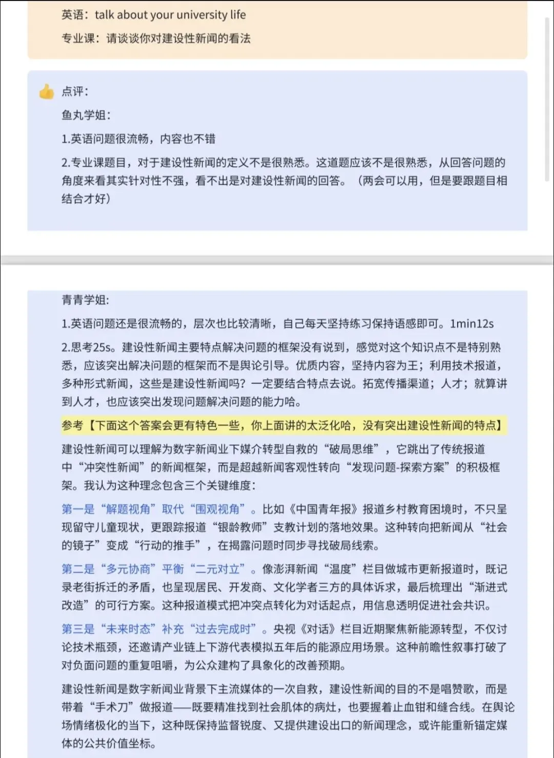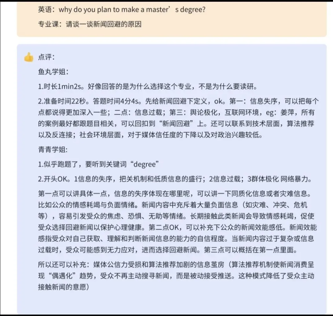 以上是我们模拟面试点评的部分记录~ 每一次模拟我们都会像这样逐点拆解、细致点评,不留任何模糊地带。更关键的是咱们模拟面试出的这些题目,和真正复试的考题大差不差,等大家拿到复试真题就会发现,很多都能对上!