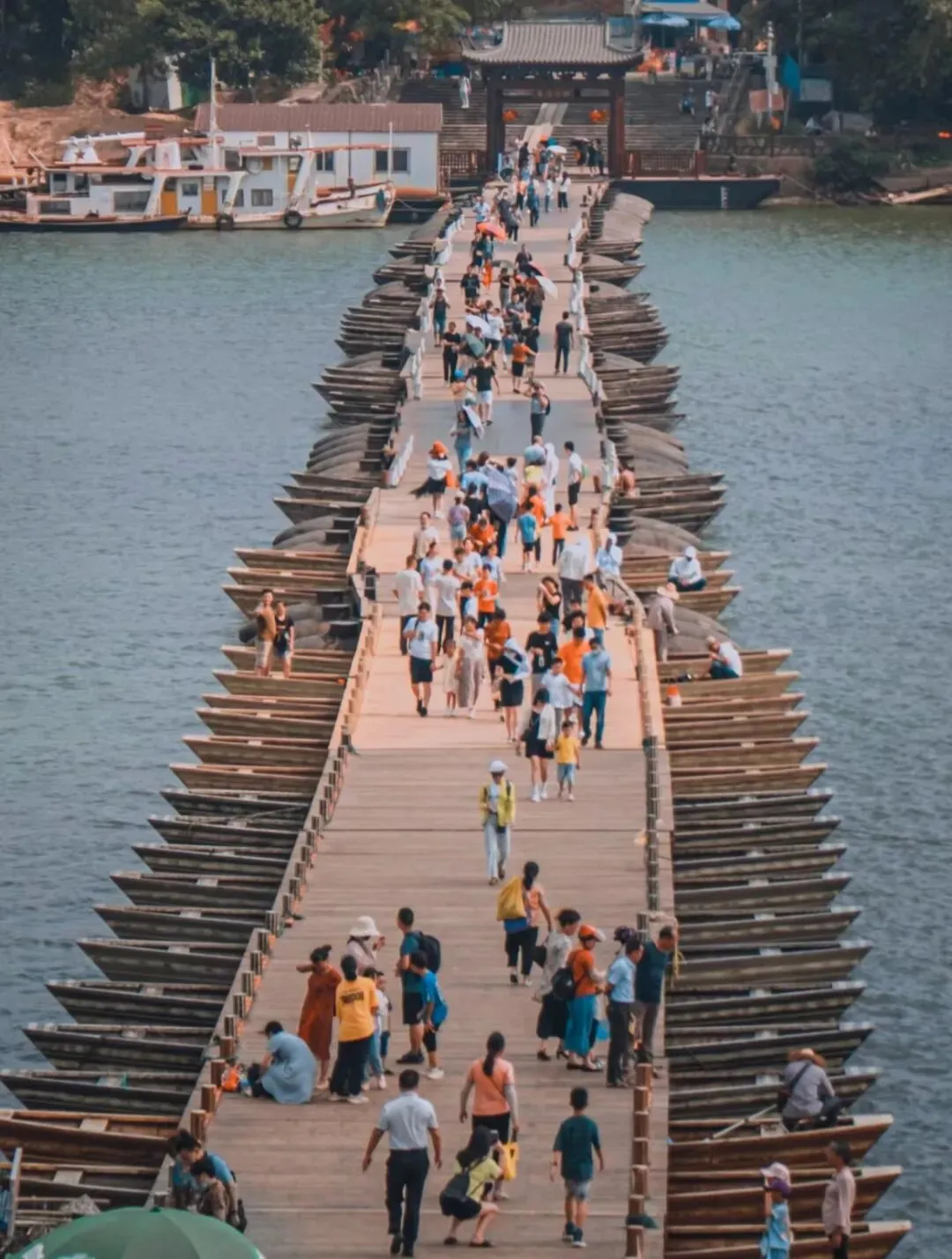 游览【江南宋代古城墙】赣州古城墙,始建于汉代,距今已有二千年的历史,现保存较完整的古城墙建于北宋嘉佑年间,是江南现存规模最大的古城墙,也是全国屈指可数的北宋砖墙之一。城墙平均高7米,从东门至西门长3.6公里,垛墙、炮城、马面、城门都保存完好,反映了赣州劳动人民的聪明智慧和高超的建筑技艺。后参观【古浮桥】赣州古浮桥,学名叫惠民桥,又称东津桥、东河浮桥、建春门浮桥。浮桥长约400米,连接贡江的两端,由100多只小舟板并束之以缆绳相连而成,始建于宋乾道年间(1163—1173)、至今已有800多年历史。
