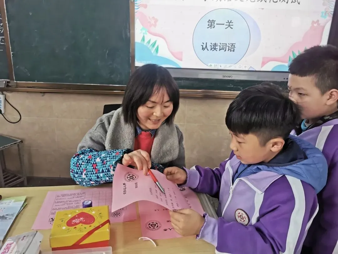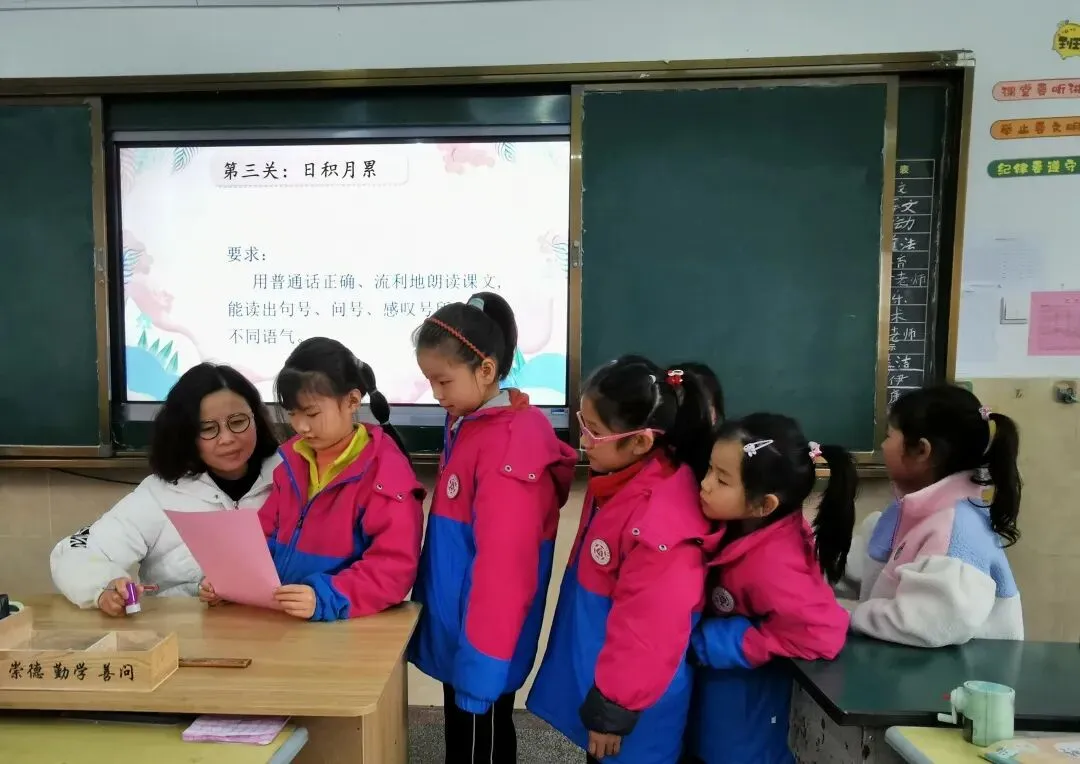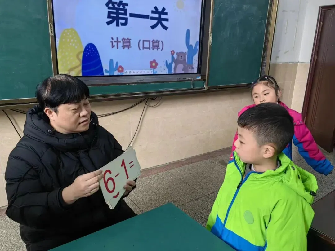 老师们集思广益、群策群力,结合语文、数学学科评价标准和低年级学生身心特点,为学生准备了丰富多彩的集章闯关项目。语文重在考察识字、积累、朗读,数学重在考察计算、动手能力、思维创造。孩子们排着整齐的队伍,有序应考,面对一道道关卡,他们沉着冷静,轻松愉快地闯过一关又一关。