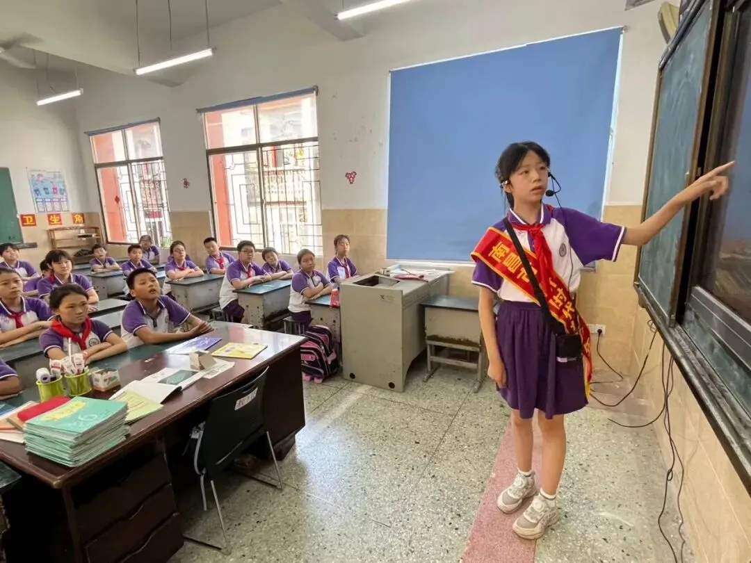 活动中,2022年度南昌市“新时代好少年”王辰蕾同学讲述了自己的学习方法和兴趣特长,从“传承红色基因”、“热心公益”、“抗疫先锋”、“身边民法典”等几个方面,介绍了自己在学校、家庭、社会中的表现,宣讲了自己的优秀事迹,并与同学们积极互动交流,呼吁大家都要从点滴小事出发,树立远大理想并为之不懈奋斗,“莫好高骛远,稳健才扎实”。