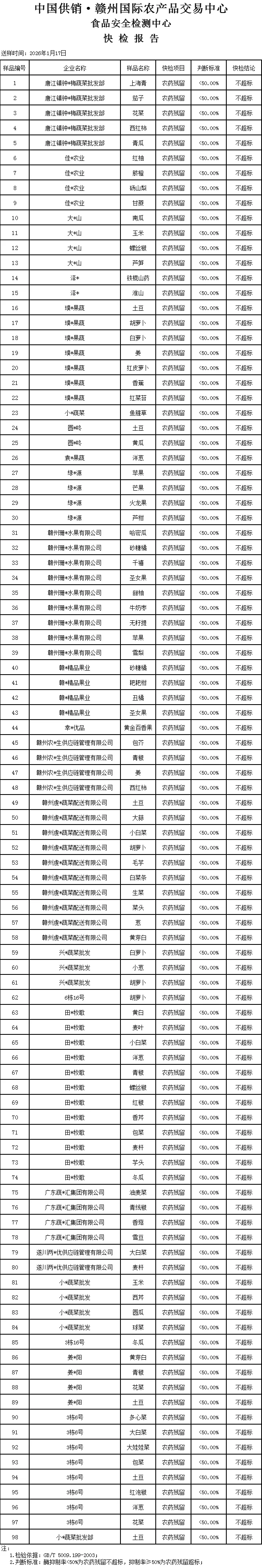 >赣州中农批市场2026年1月17日农产品农残抽样检查