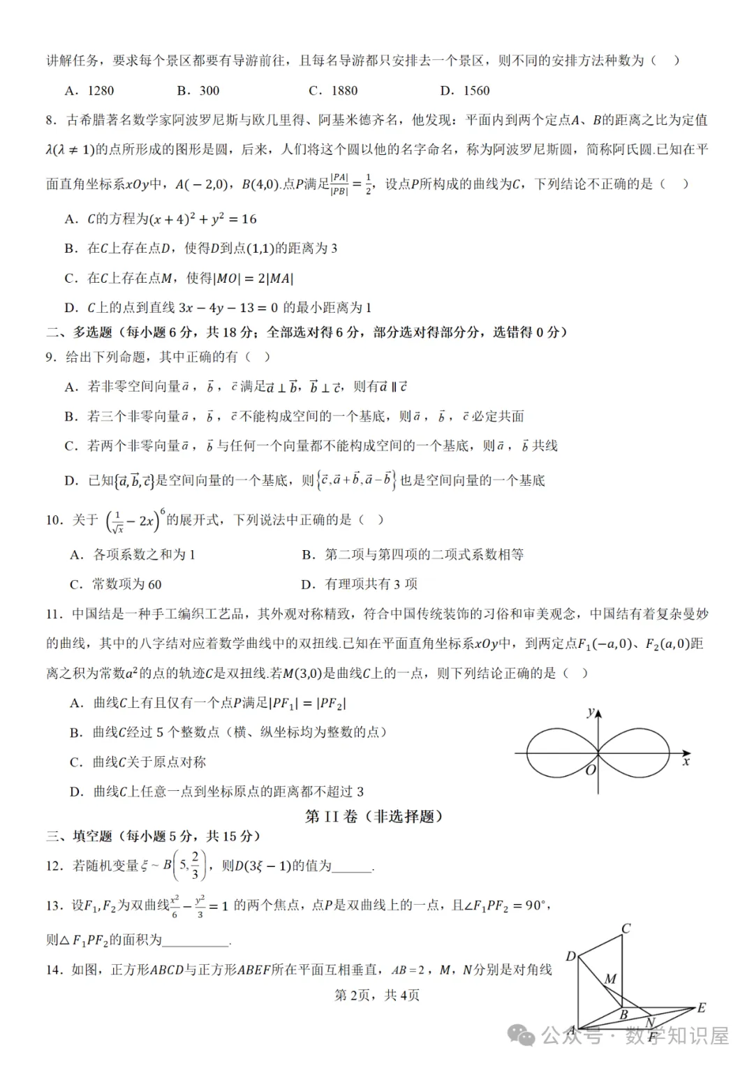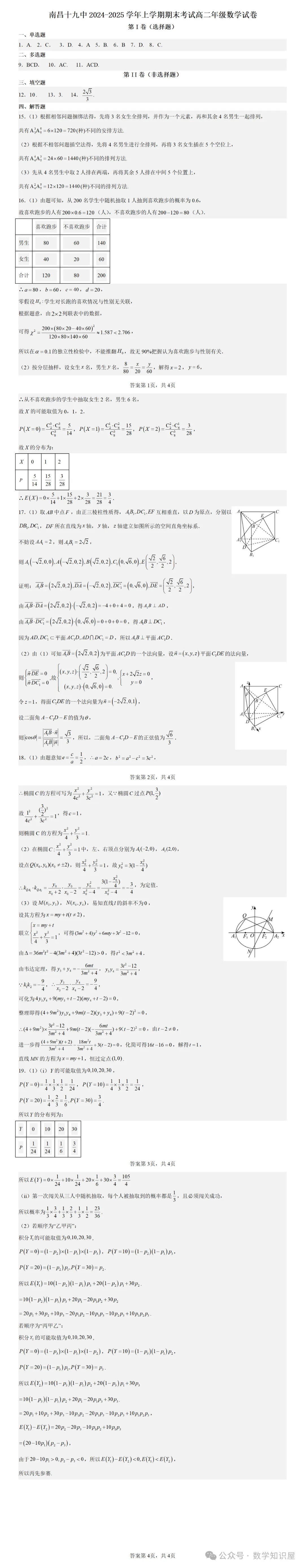 >江西省南昌市第十九中学2024-2025学年高二上学期1月期末数学试题