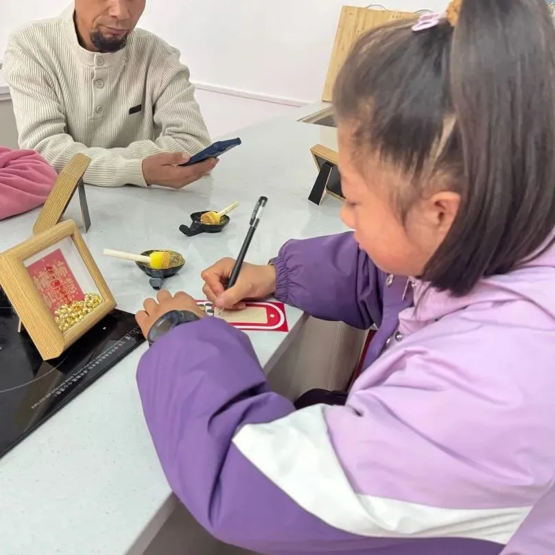 美食分享过后,亲子手工创作环节温馨开启。学校为每组家庭准备了新年手工相框,家长们耐心指导孩子们将对新年的期盼融入创作之中。一个个独具匠心的新年相框逐渐成型,家长与孩子的眼神中满是专注与笑意,定格属于彼此的温馨时光。