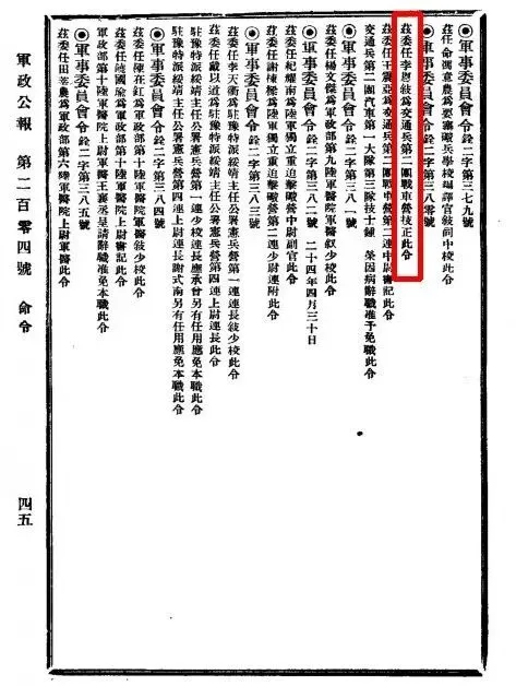 1935年4月29日,军事委员会令铨二字380号:李恩叙 委任 交通兵第二团战车营 技正。