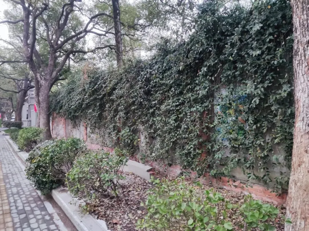 江纺仅存的新厂厂房招租、江纺花卉综合市场招商中⋯⋯老江纺汽车队大门口江纺厂前路北侧残存老厂房外斑驳的围墙,爬满了爬山虎。由江纺厂前路往西前行,经过江纺仅存的老厂房、汽车队等老建筑物门口,厂区外围围墙历经风雨剥蚀,已斑驳不堪,爬山虎缠缠绕绕,与旁边的其他草木牵牵连连。