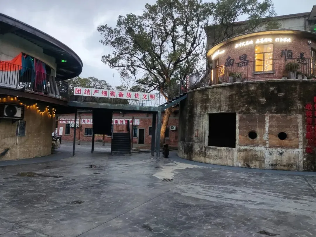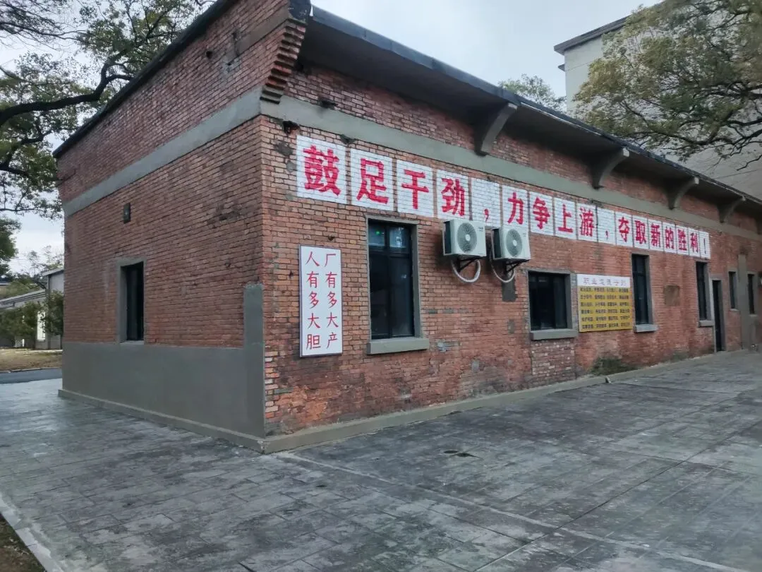 继续沿厂前路往西行约200米,便是江纺•拾光小镇。斑驳的红砖厂房、充满年代感的安全生产标语