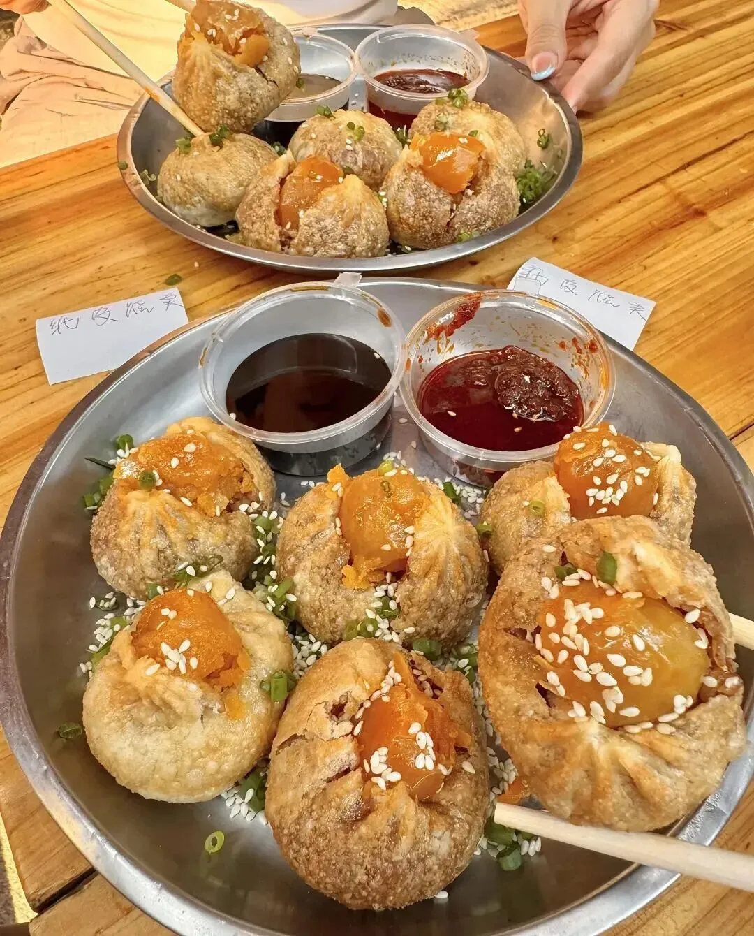 结果一口下去 , 外面酥酥脆脆 , 里面糯叽叽的 , 关键每一个都塞了一整颗咸蛋黄 , 咬开那一瞬间 , 真的会上瘾。