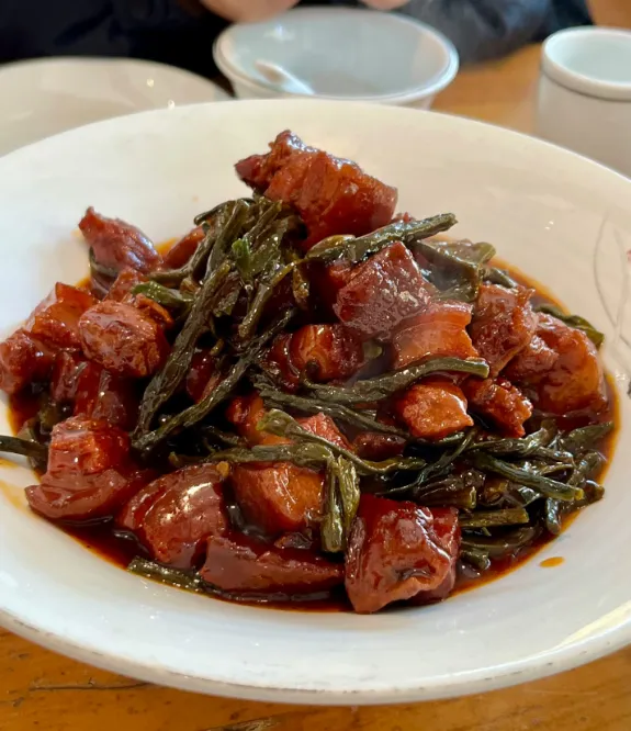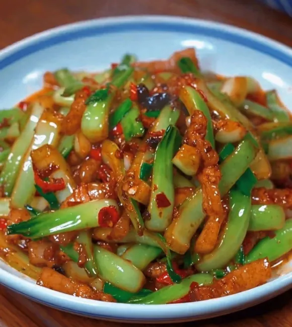 小鸡腿,三角豆泡炒肉,清炒油麦菜,冬瓜肉末汤,酸奶