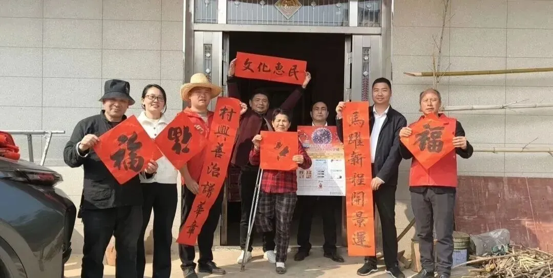 随后,由志愿者和村民共同参与的文艺节目接连上演,包括地方特色快板、诗歌朗诵、舞蹈表演和互动游戏,现场气氛热烈。多位书法家也现场挥毫,为村民书写春联、赠送“福”字。
