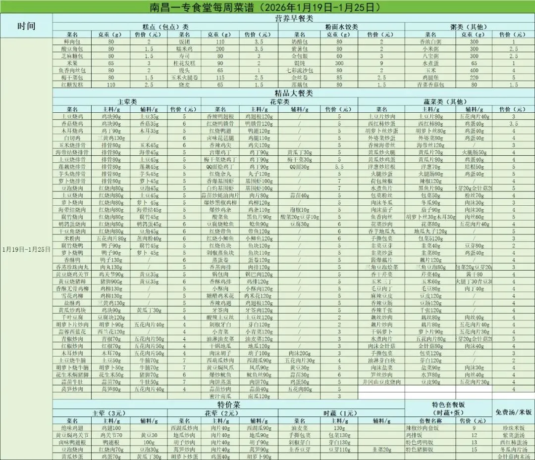 大寒迎年,食暖身安 | 南昌一专校园食谱公示(1月19日-1月25日)