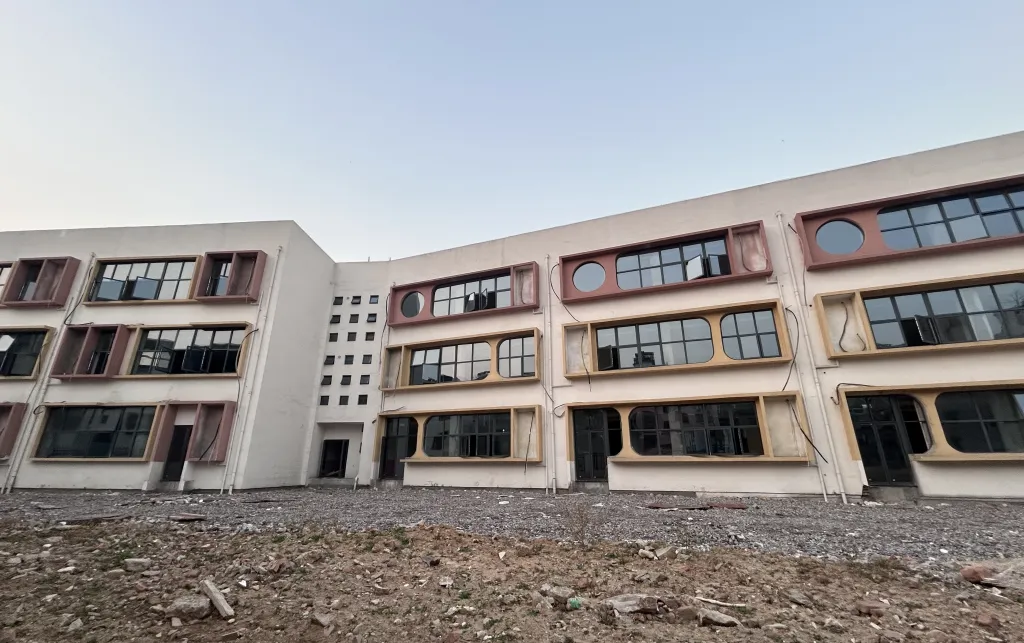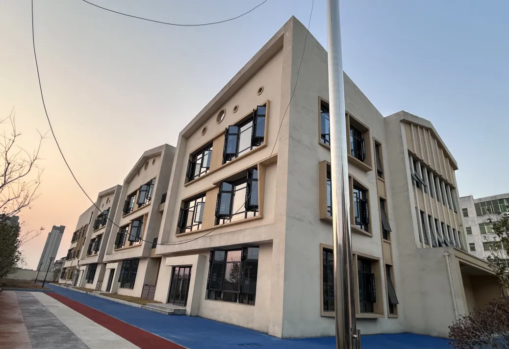 目前该园区教学楼主体也已建成并完成外立面装饰,门窗框架均已安装,室内装修也基本收尾,但校门及入口处还需继续施工完善。