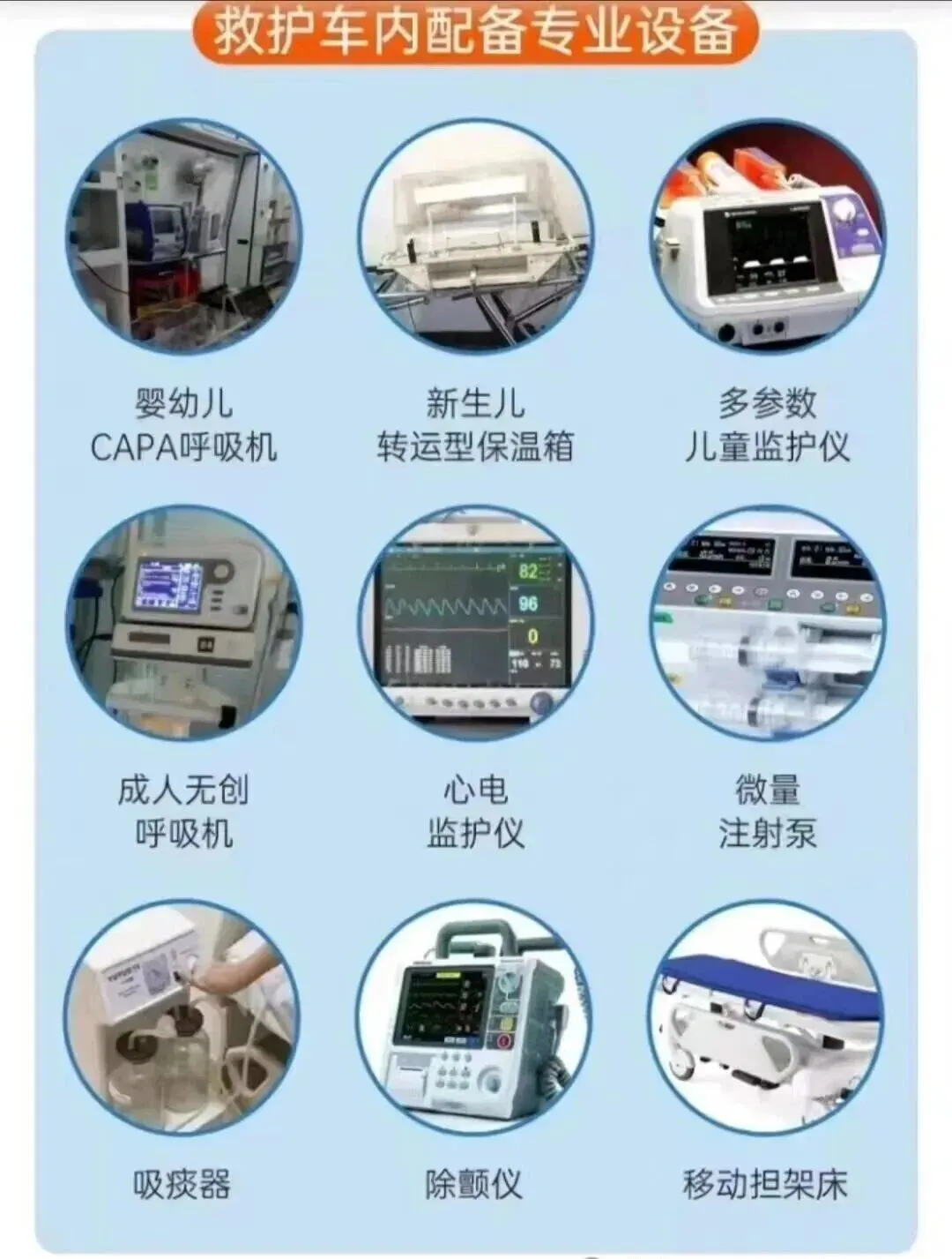 设备保障:全系进口救护车,配备国际标准医疗设备