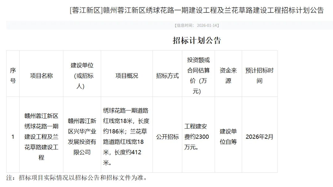 约2300万!赣州蓉江新区将建绣球花路一期、兰花草路来了,一起来看看具体情况。
