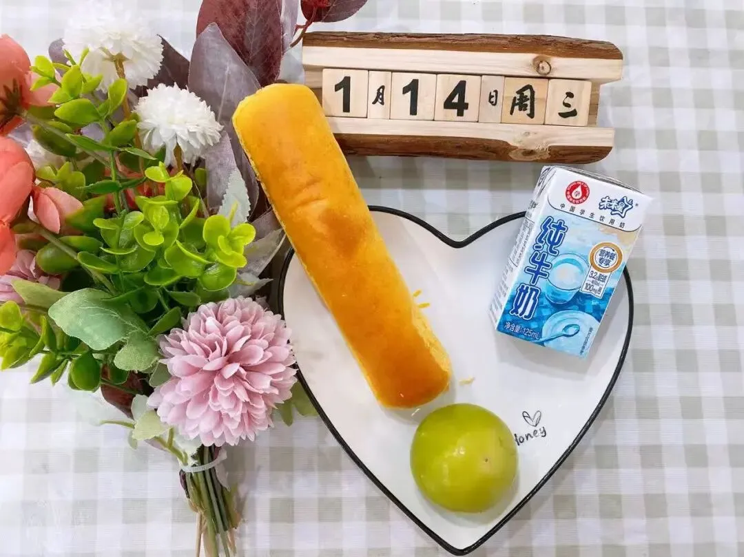 牛奶、菲尔雪萝卜面包、青枣