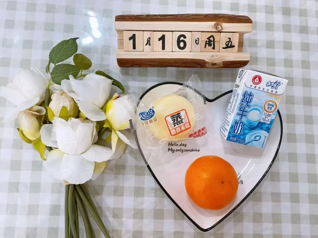 牛奶、蒸蛋糕、沃柑