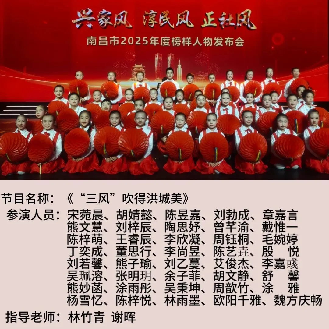 南昌市青少年宫合唱团应邀参加发布会节目演出,孩子们以纯净的童声献唱《“三风”吹得洪城美》。他们专注而真挚地演绎,不仅展现新时代少年儿童的精神风貌,更将“三风”精神以艺术化的方式传递至每一位观众心中。