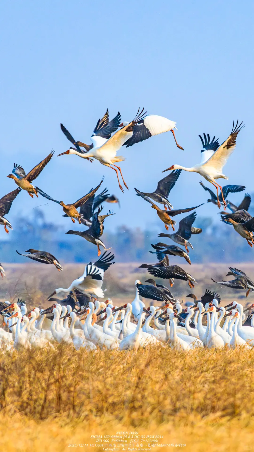 想看鸟,走鄱阳湖湿地公园,白鹤喜鹊一样聚,安静站一会,能看到整群起落。