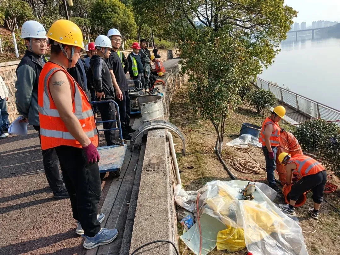 集团党委副书记、总经理范秀刚现场调度章江北截污干管清淤、修复施工