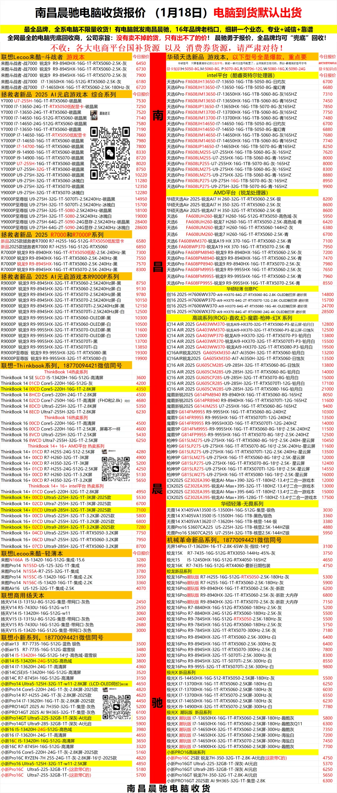 南昌晨驰电脑回收报价更新(1月18日)