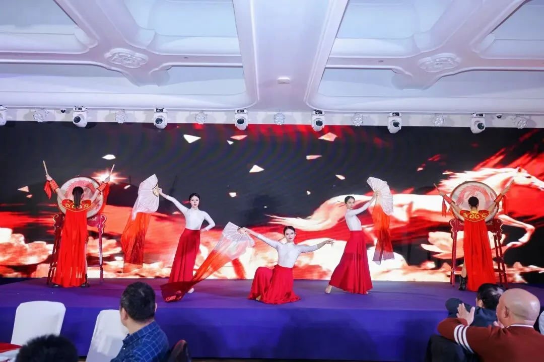 暖场环节,宣传片与赞助片循环播放,既回顾了商会发展的难忘瞬间,也向支持商会的赞助商们致以诚挚谢意。18:05,开场舞《驰骋四方》震撼登场,舞者身姿矫健、动感十足,寓意着赣商在商海中勇毅开拓、驰骋天下的气魄,瞬间点燃现场气氛。主持人随后闪亮登场,以热情洋溢的开场白,向在场嘉宾与会员送上美好祝福。