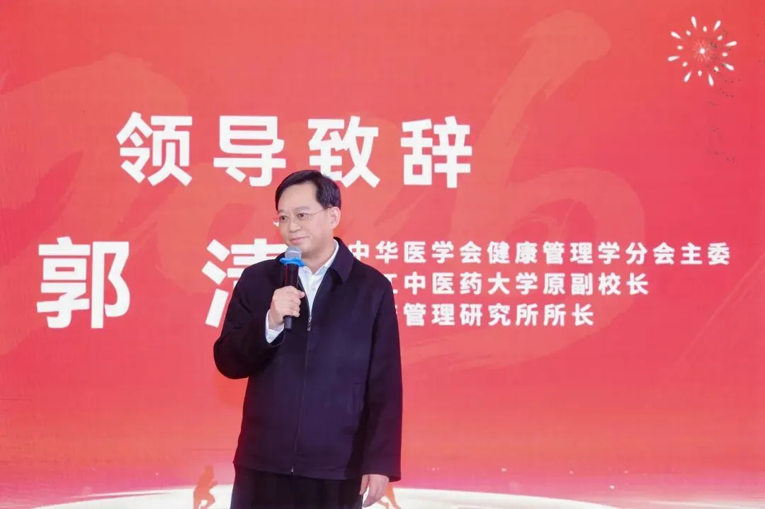 中华医学会健康管理学分会主委、浙江中医药大学原副校长、健康管理研究所所长郭清先致辞。看到赣商团结拼搏,看到赣商每年都有新变化,新高度,由衷高兴,祝福赣商所有会员,新年更上层楼。