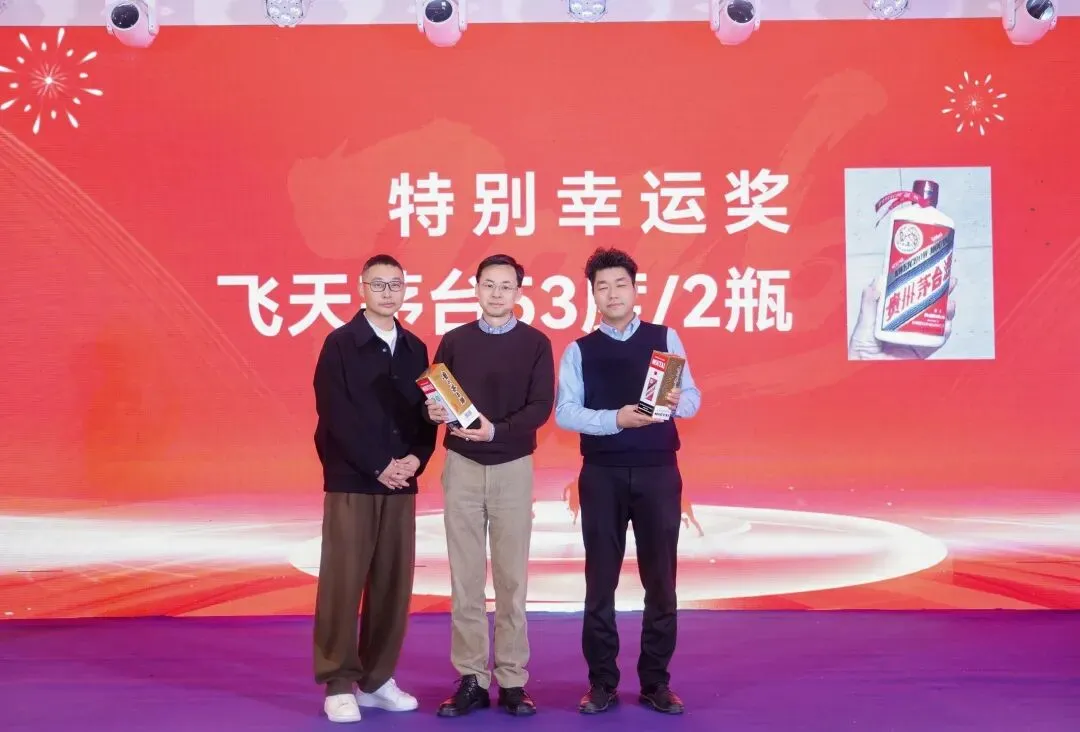 幸运抽奖环节贯穿晚宴全程,成为最受期待的亮点。飞天茅台53度、优生活系列产品、赣州特色脐橙、乐平桃酥王等丰厚奖品陆续送出,每一轮抽奖都引发阵阵欢呼。当中奖会员王女士捧起膜焕星车窗膜套装时,激动地说:“不仅抽中了实用奖品,更感受到了商会大家庭的温暖。在杭州打拼多年,是商会让我们这些异乡人有了团圆的归属感,就像回到了赣州老家一样亲切。”而6000元现金抽奖、九号电动滑板车等重磅奖品的揭晓,更是将现场氛围推向一个又一个高潮。