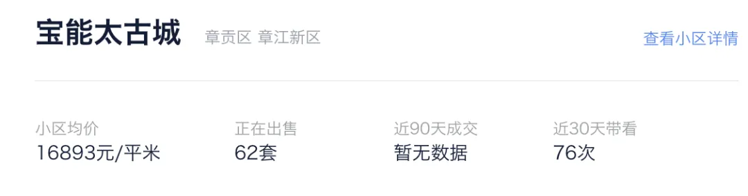 ▲ 赣州宝能太古城贝壳挂牌信息,目前在售62套二手房