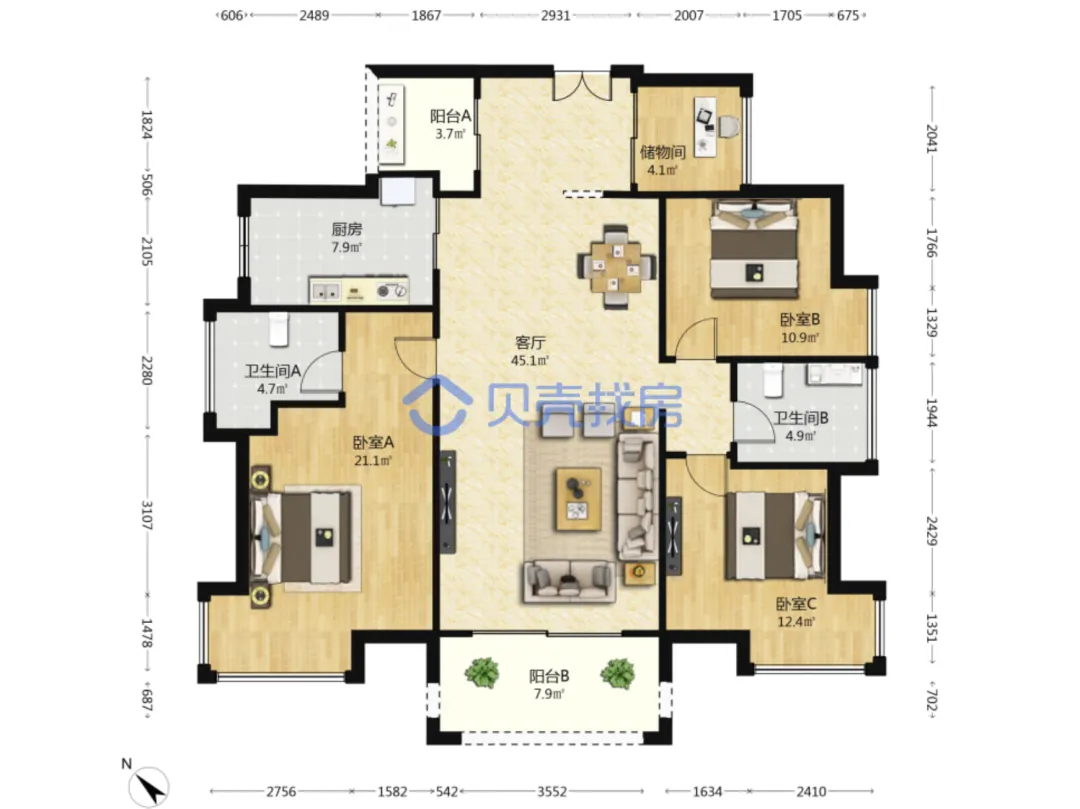 ▲ 赣州宝能太古城这套法拍房实拍图和户型图,布局不太行
