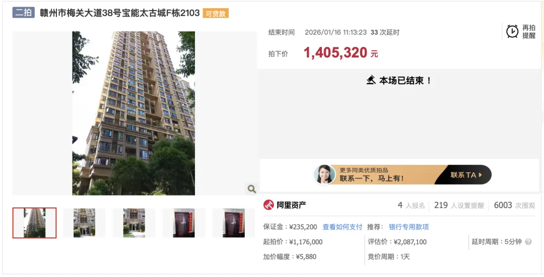 ▲ 赣州宝能太古城这套法拍房二拍终于成交