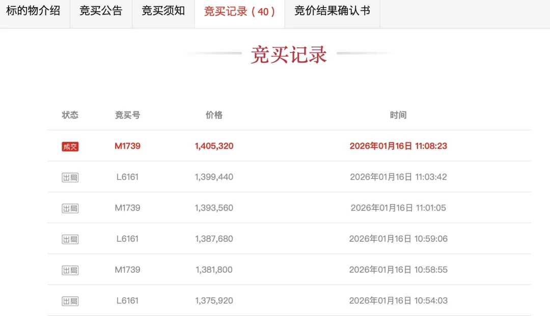 起拍价117.6万结果吸引了4人报名参拍
