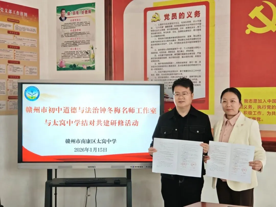 征程万里风正劲,重任千钧再扬帆。本次工作室与南康区太窝中学的共建合作,共同开启了携手并进、共谱新篇的育人旅程。面向未来,双方将持续深化合作,发挥思政课程立德树人的关键作用,开拓思政教育新形态,绘就区域协同发展的同心圆,为锻造让党放心、人民满意的赣州思政教育贡献力量!
