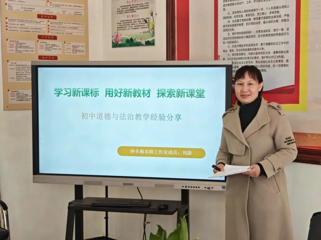 工作室成员、赣州市赣县区第二中学刘蔚老师作了题为《学习新课标 用好新教材 探索新课堂》的讲座。她以新课标精神为引领,系统阐述了思政教学从“教材解读”走向“育人实践”的三重转化路径:精研课标,深研教材,注重学科素养;集体备课,把握重难点,用好新教材;集思广益,资源共享,探究新课堂。讲座期间,她还向与会教师分享了新教材中的示范课例《维护秩序靠规则》,生动诠释了新教材如何实现情境、活动与价值引导的有机融合,为课堂教学转型提供了鲜活范本。