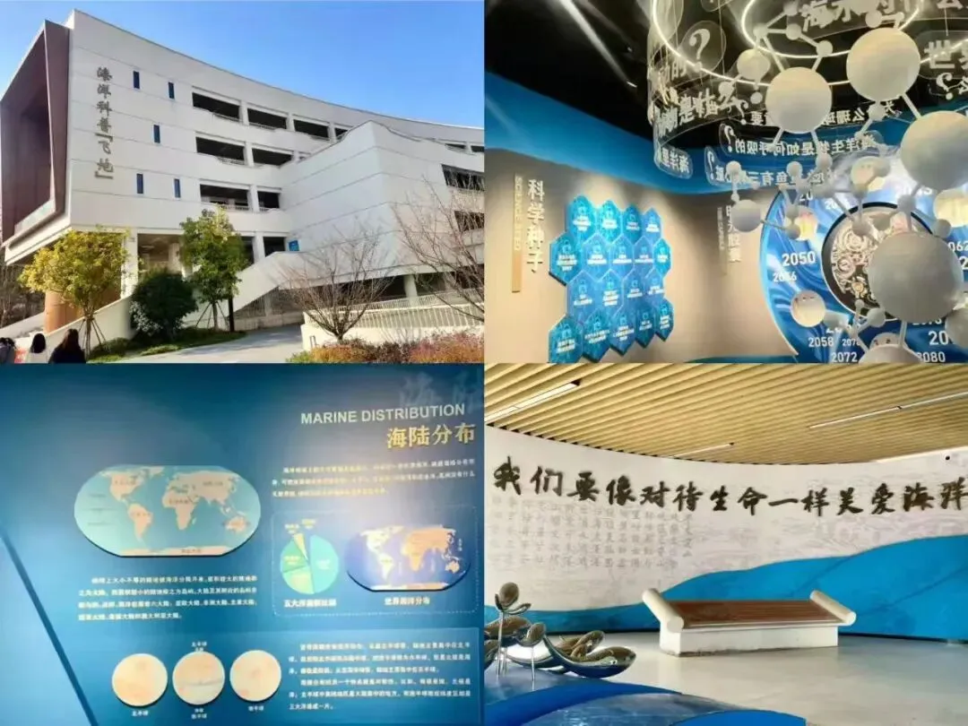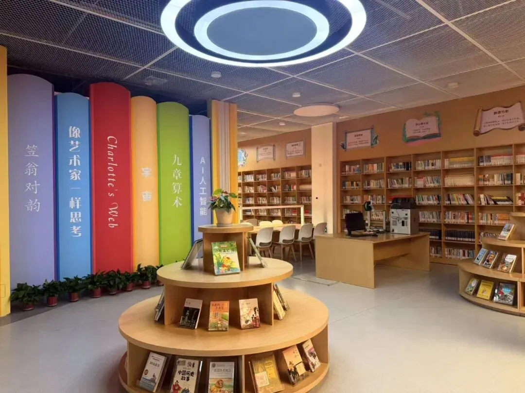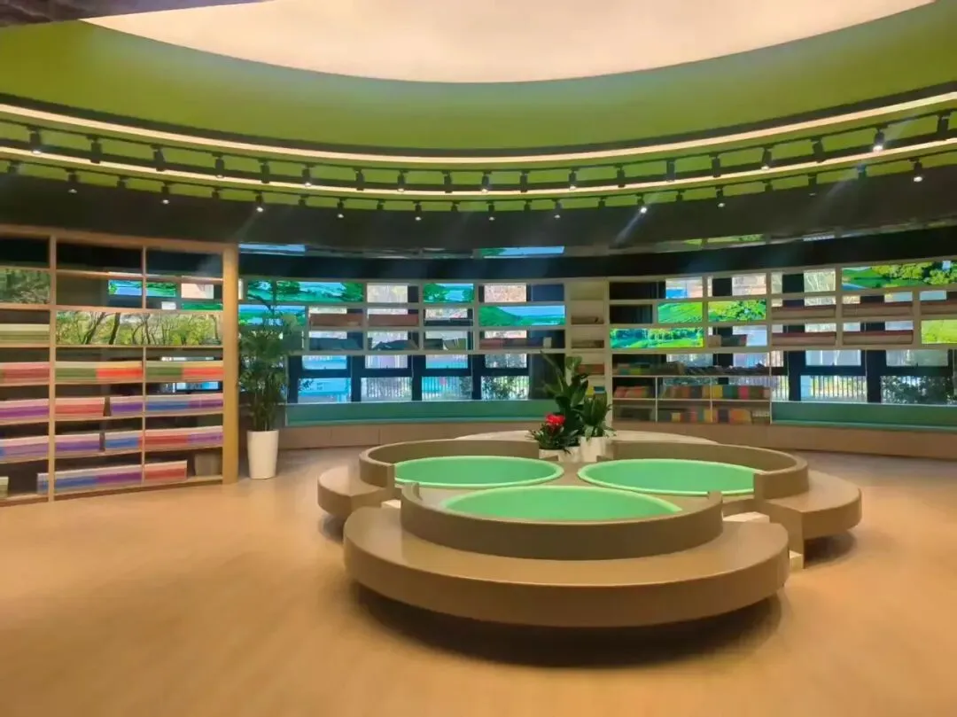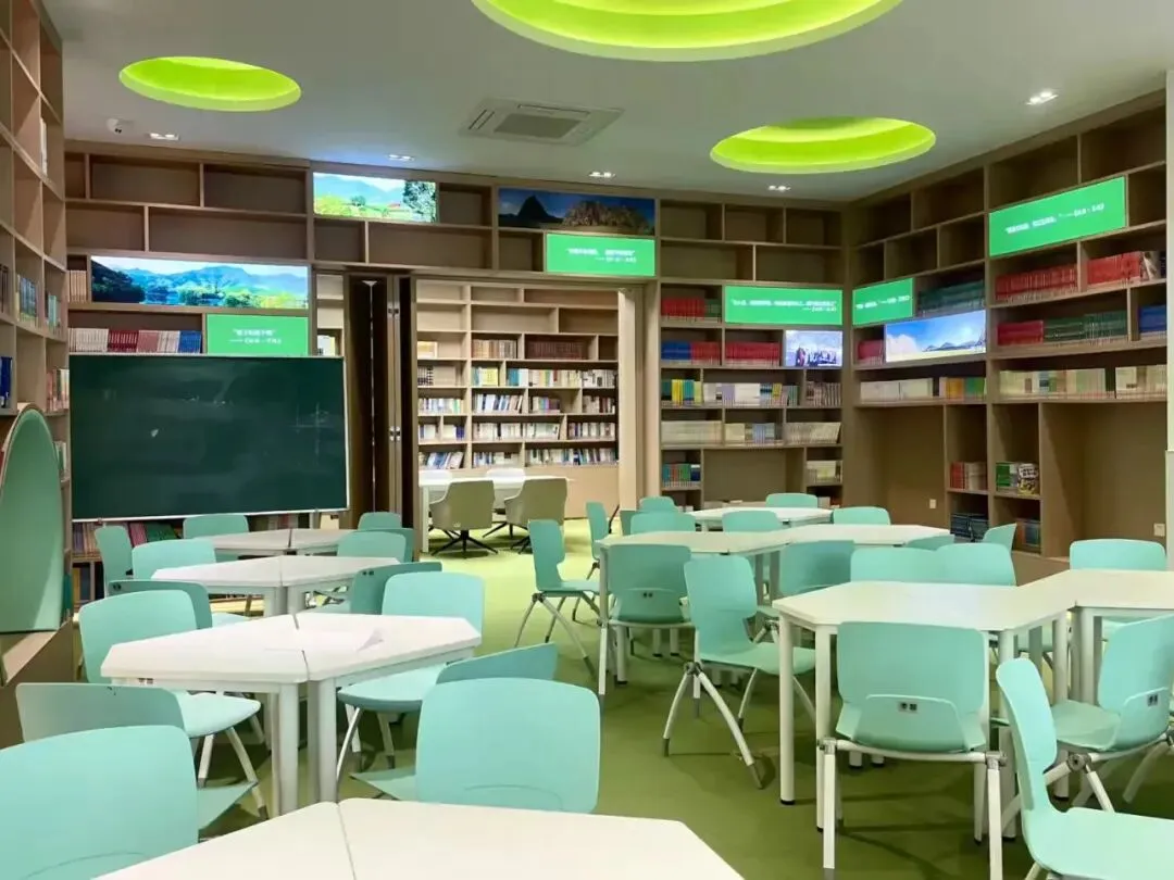 森林书屋宛如静谧的绿色秘境,错落的书架、点缀的绿植与柔和灯光,为孩子们打造自在阅读的温馨天地;海洋科普“飞地”里,精致的生物模型与沉浸式光影装置,将深海世界搬到校园,让孩子们在探索中树立“关爱海洋如关爱生命”的信念。