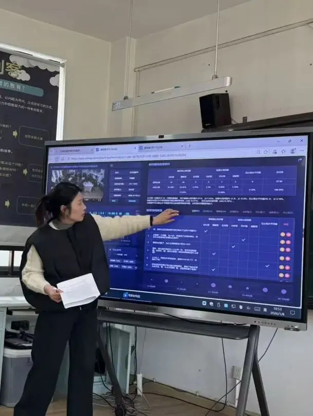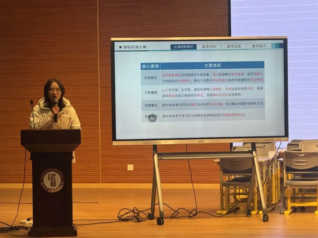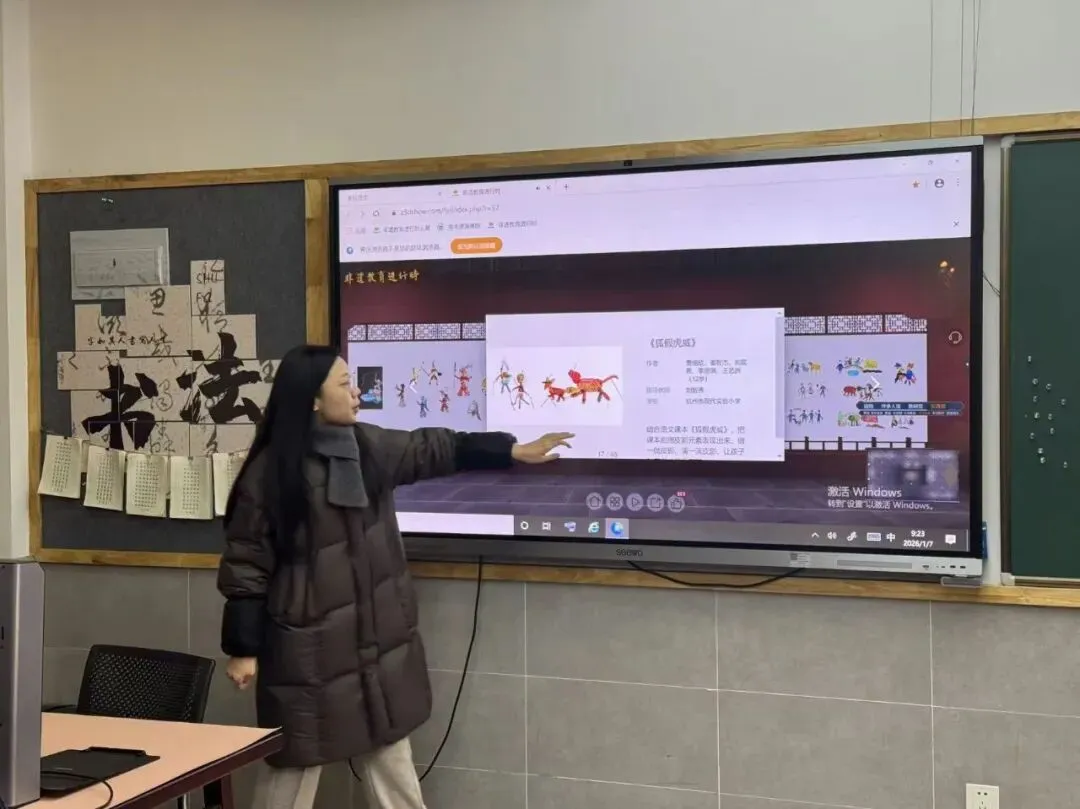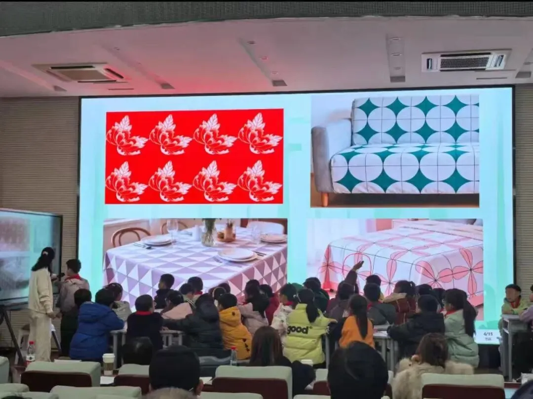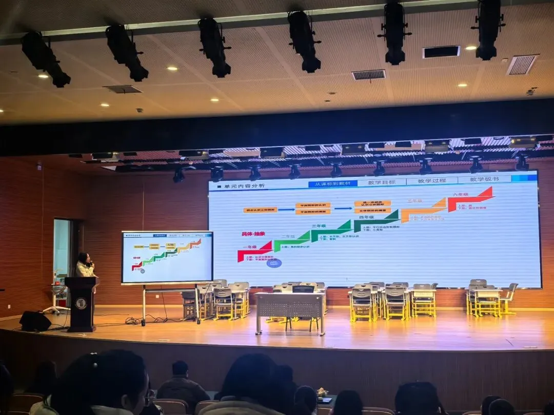 洪文珍老师展示《花布设计师》跨学科主题课。以“设计一块花布”为任务,整合数学中的图形运动、美术中的构成原理及语言表达等要素。通过小组互评、过程性记录与AI辅助反馈等方式,持续优化自己的作品。
