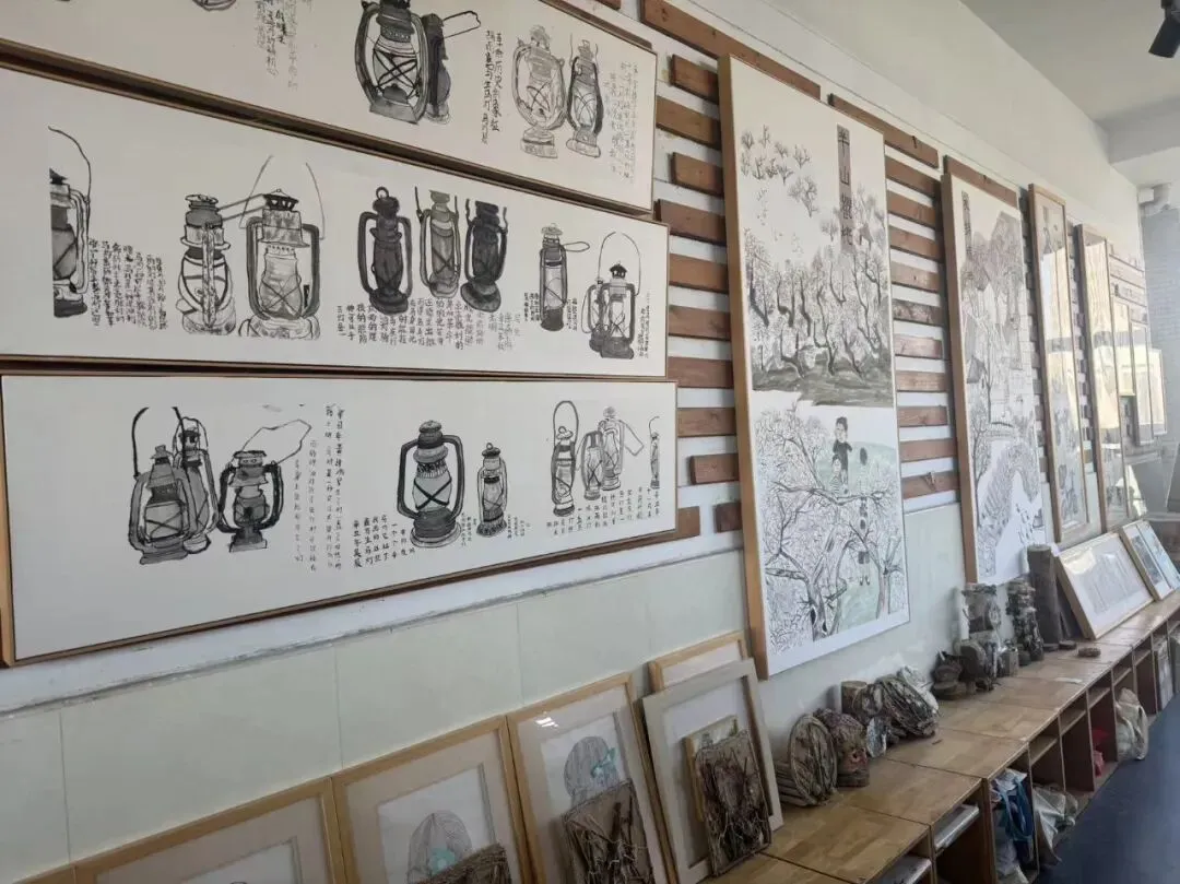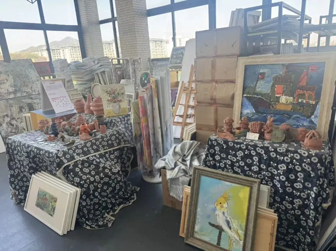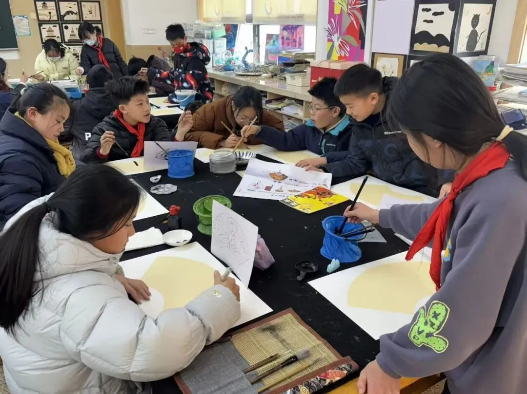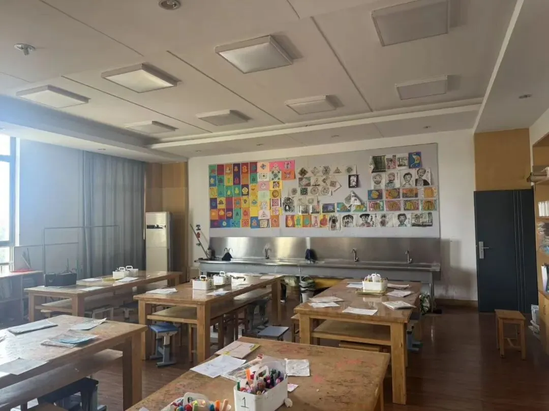 美术教室中,水墨画作、创意油画与学生手作相映成趣,彰显美育与生活实践的深度融合,让学生在科创与艺术的滋养中全面发展。