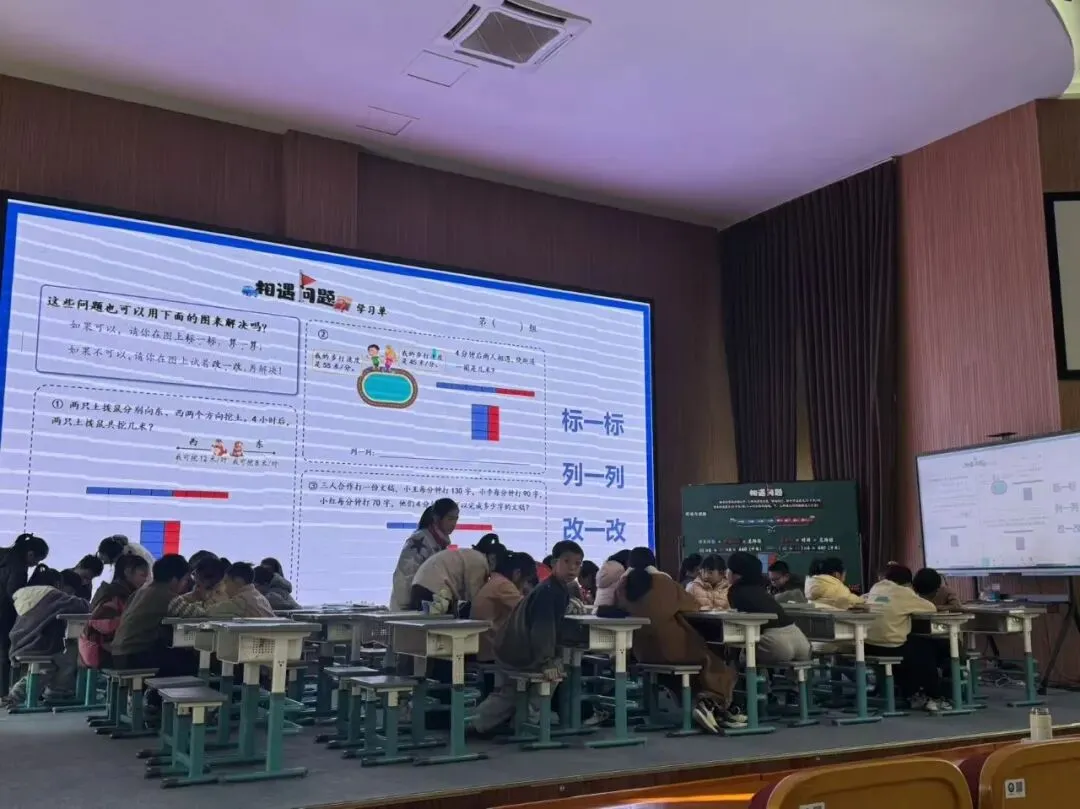 三年级《阅读理解专题复习课》围绕“理解”核心,融入《海滨小城》等经典篇目,通过地图标注、图文赏析、关键句梳理等形式,引导学生自主探究。有效增强了学生的阅读分析与解题能力。余睿欣老师的《租船问题》数学实践课,以真实生活情境引导学生探索多元购票策略,实现知识与应用能力双提升。姜芳琳老师开展以“书包超重”为主题的跨学科探究课例。课堂从“书包超重标准”的现实讨论出发,通过“背一背、提一提”的实践体验与统计图表分析,自主探究合理承重标准,让学生在真实问题解决中应用数学。