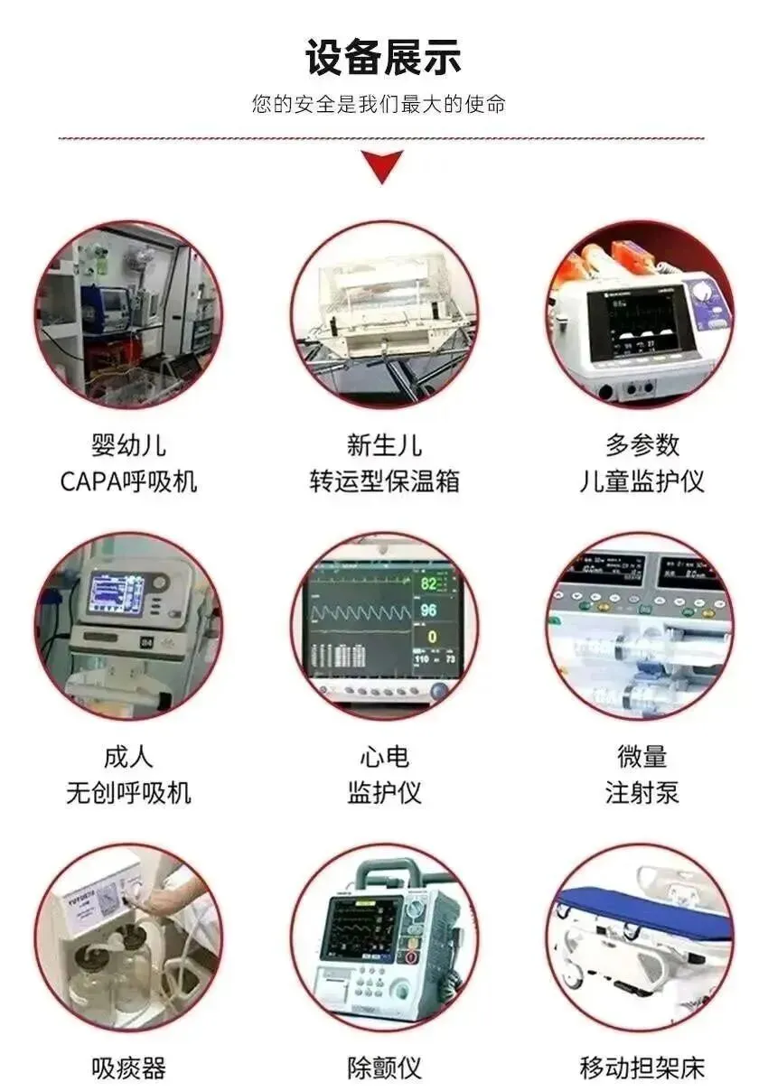 •重症监护系统:配备多功能监护仪、呼吸机、除颤仪