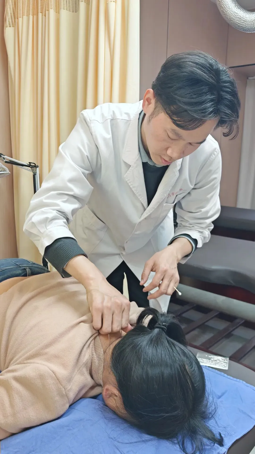 在针灸技术方面,他不仅精通传统针刺,还擅长浮针疗法和微针刀技术。浮针疗法作为一种现代针灸技术,特别适合治疗各种软组织伤痛。