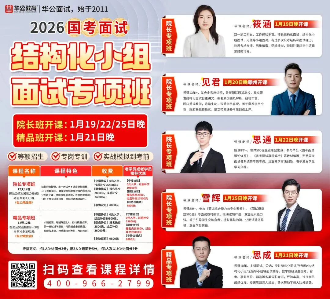 2026年国考结构化面试课1月20日晚赣州开班