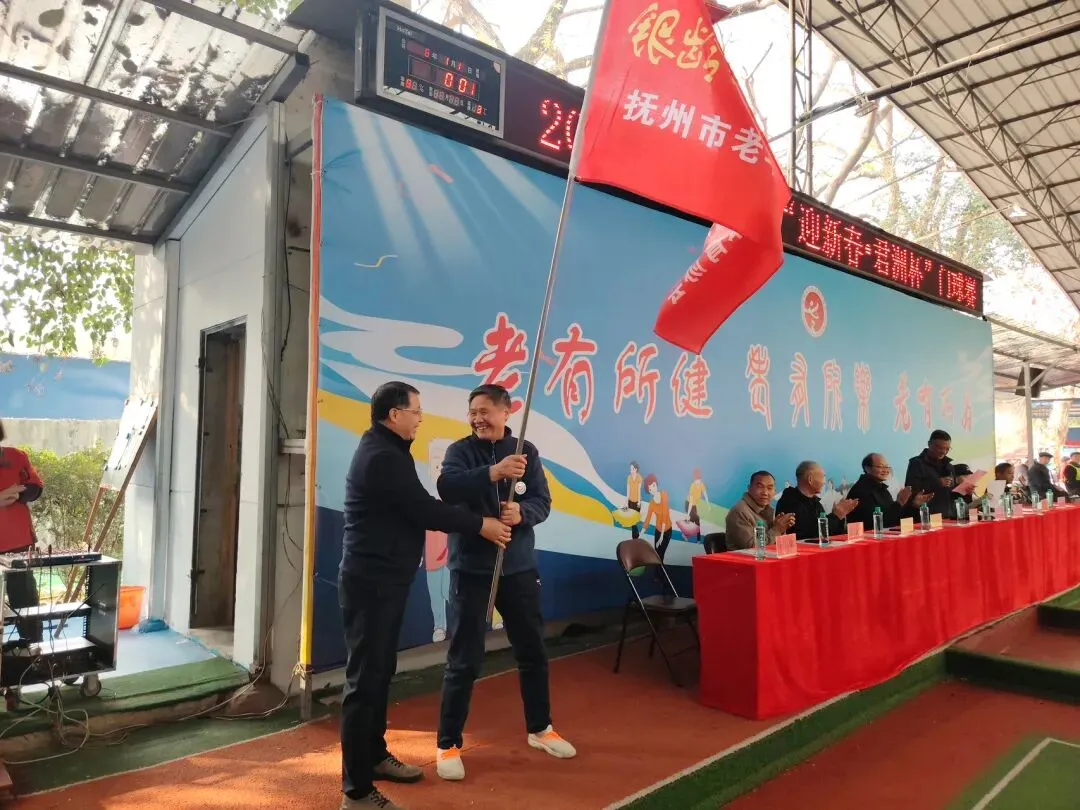 开幕式上,宋东方宣布比赛正式开始,常务副主席吴斌主持仪式,副主席肖越辉为“银龄健身志愿者服务队”授旗,冠名企业江西君洲生态养殖有限公司总经理周雪琴致辞。一系列庄重而温暖的环节,彰显了抚州对老年群体精神文化与健康生活的高度重视。