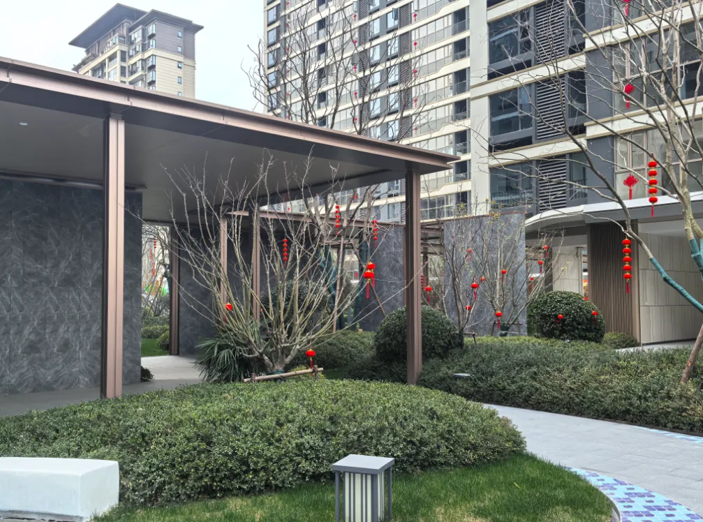 小区目前就交付了3栋,所以园林展示也不大。主要还是之前展示的部分