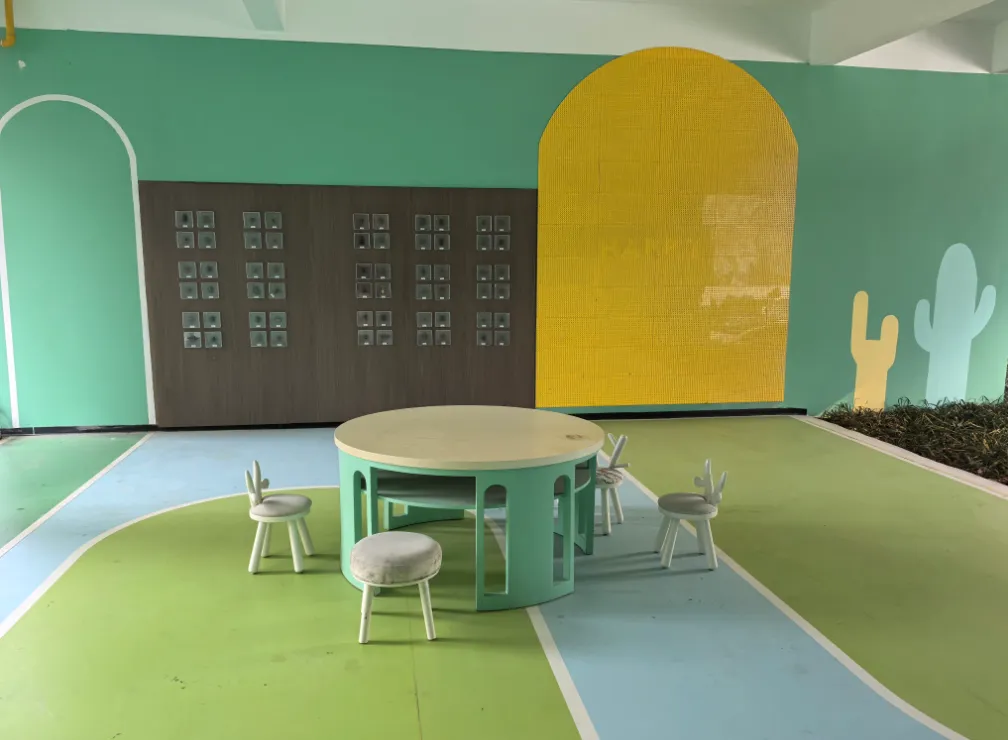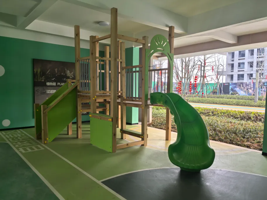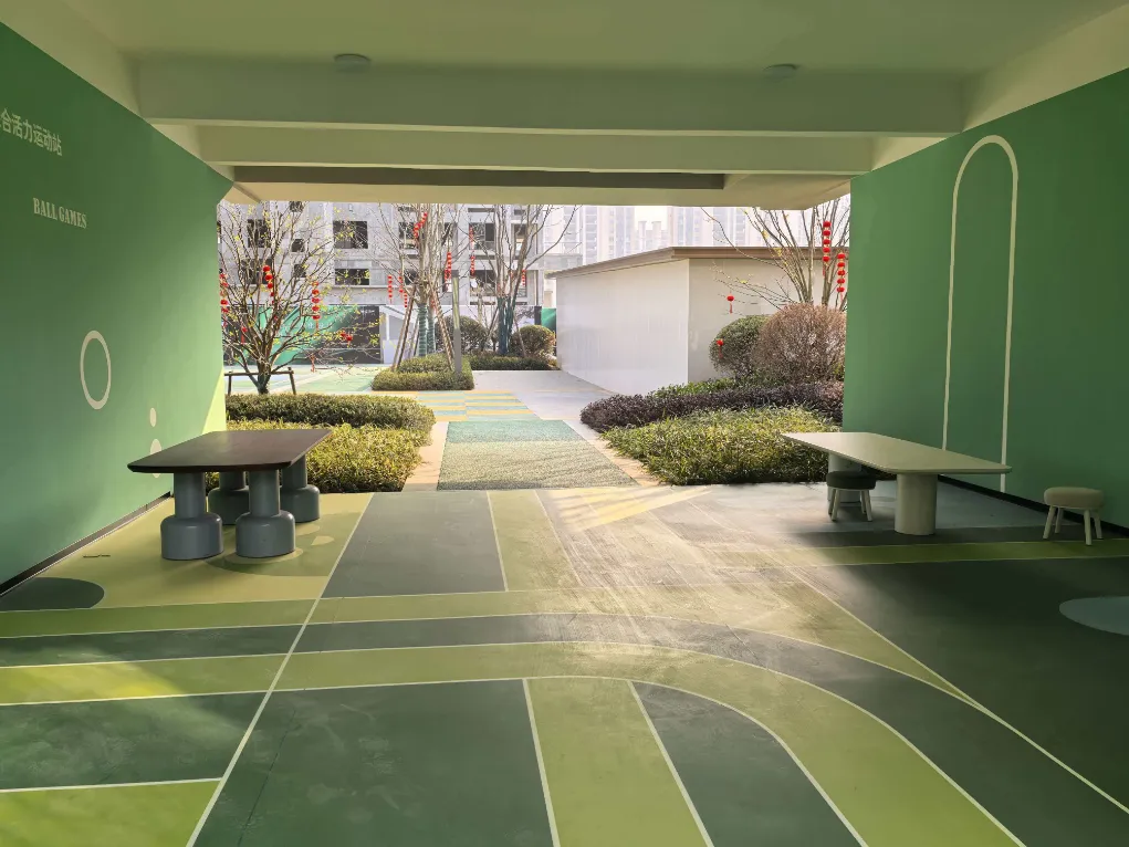 目前交付的每一栋都有架空层,也是不一样的主题。有些墙面挂了一些装饰画