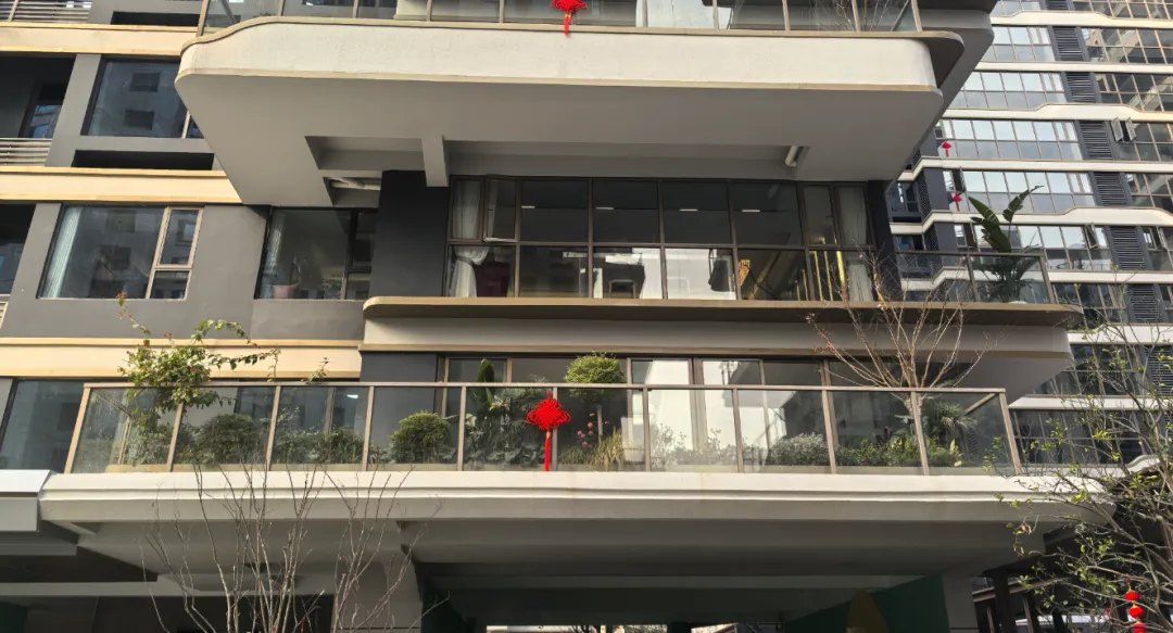这是南面,露台在端户。中间户还是正常的阳台,已经封了窗