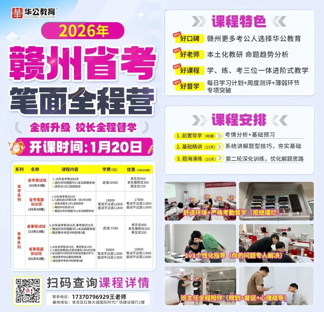 赣州开课!2026年公务员笔试课1月20日晚开课!