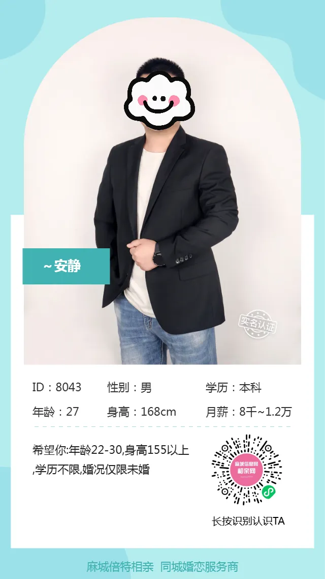 麻城信息网同城婚恋交友平台,将始终坚持真实、靠谱、有保障的品牌定位,为本地数万单身男女解决婚恋问题。添加我们的红娘老师微信号,即可为您提供情感疏导咨询,一对一牵线等贴心服务。为了保证【麻城相亲网】会员资料的真实性,有效性。要求所有参与征婚活动人员必须填写本人真实完整的资料!拒绝填写虚假资料,否则客服不予通过,头像必须是本人照片,不可上传风景、动物图像等,否则客服有权删除,资料必须真实可靠,已婚人士勿扰!产生任何家庭矛盾或社会影响后果自负!点击阅读原文即可进入麻城信息网相亲网!